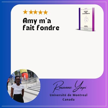 ” Roses des continents est écrit avec tellement d'émotion qu'on ne peut que s'y retrouver. J'ai particulièrement été touchée par "Afrique et Marie.” mais Amy, le petit poème m'a fait fondre.