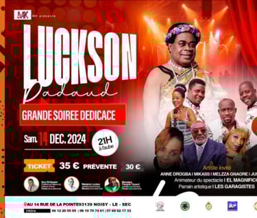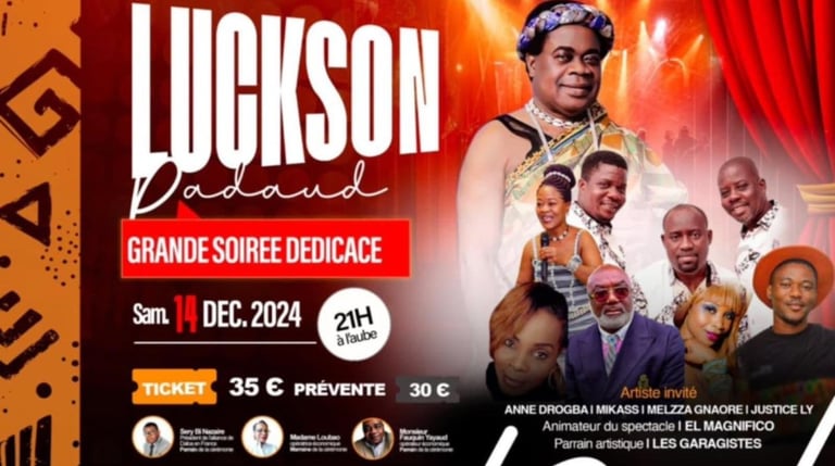 Paris s'apprête à vibrer au son de la voix captivante de Luckon Padaud. L'artiste chanteur ivoirien, connu pour ses performances intenses et son style musical unique et qui vient de célébrer ses 40 ans de carrière musicale, donnera un concert exceptionnel le 14 décembre 2024 à Paris. Ce spectacle, très attendu par ses fans, promet d’être un moment inoubliable pour les amateurs de musique.